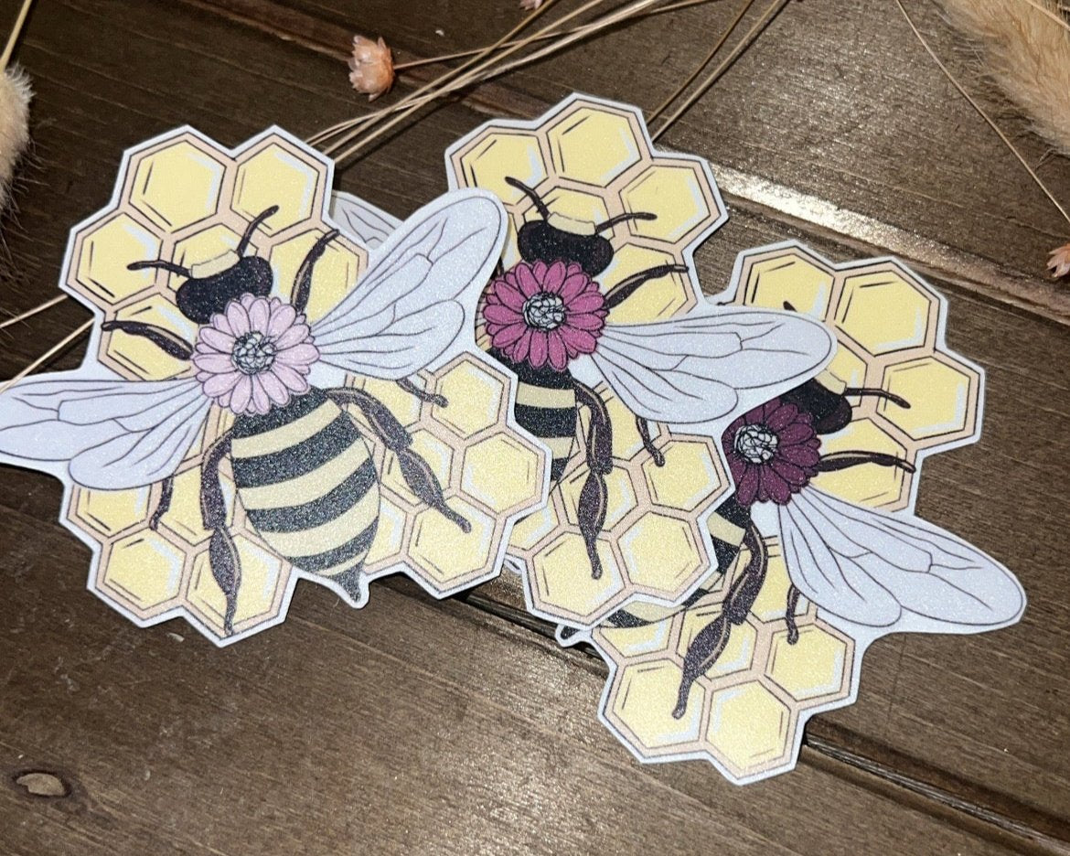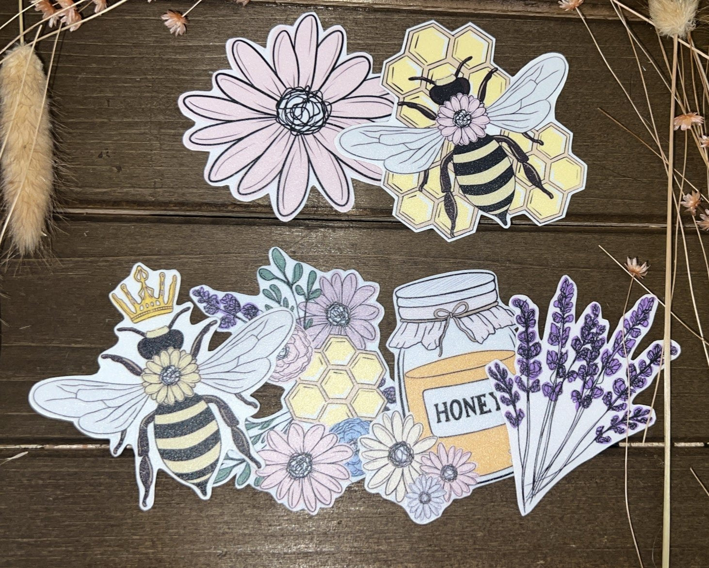 Perfect for adding a touch of whimsy to your journals, planners, laptops, or scrapbooks. Each sticker is individually crafted with intricate detail and a subtle shimmer, making them the perfect addition to your nature-inspired projects. Whether you're a bee lover or just adore floral motifs, this set is a must-have!